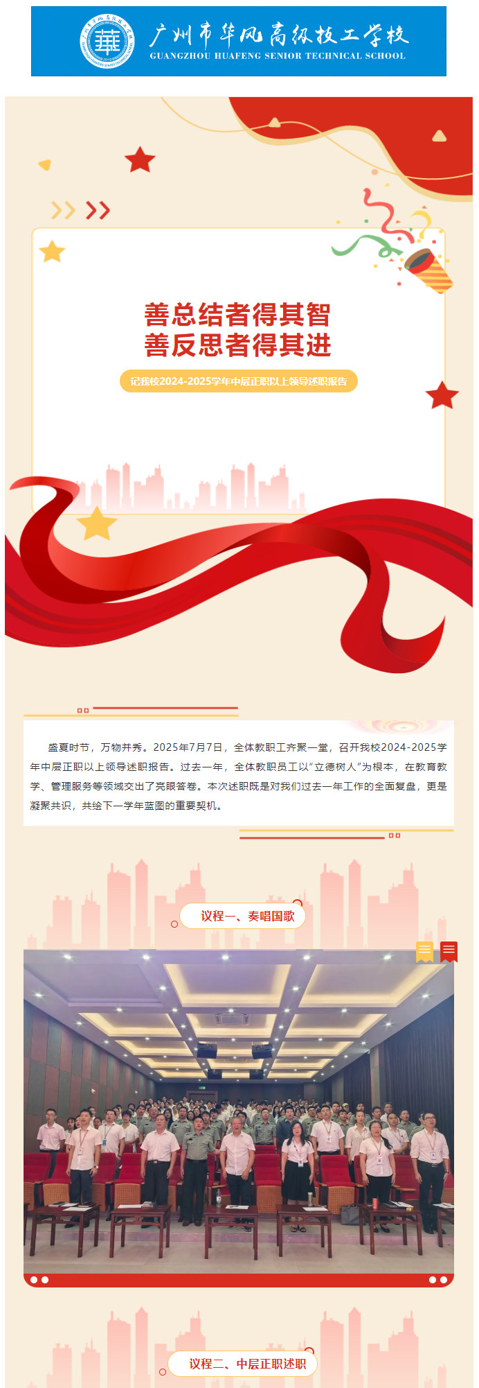 善总结者得其智,善反思者得其进-记我校2024-2025学年中层正职以上领导述职报告