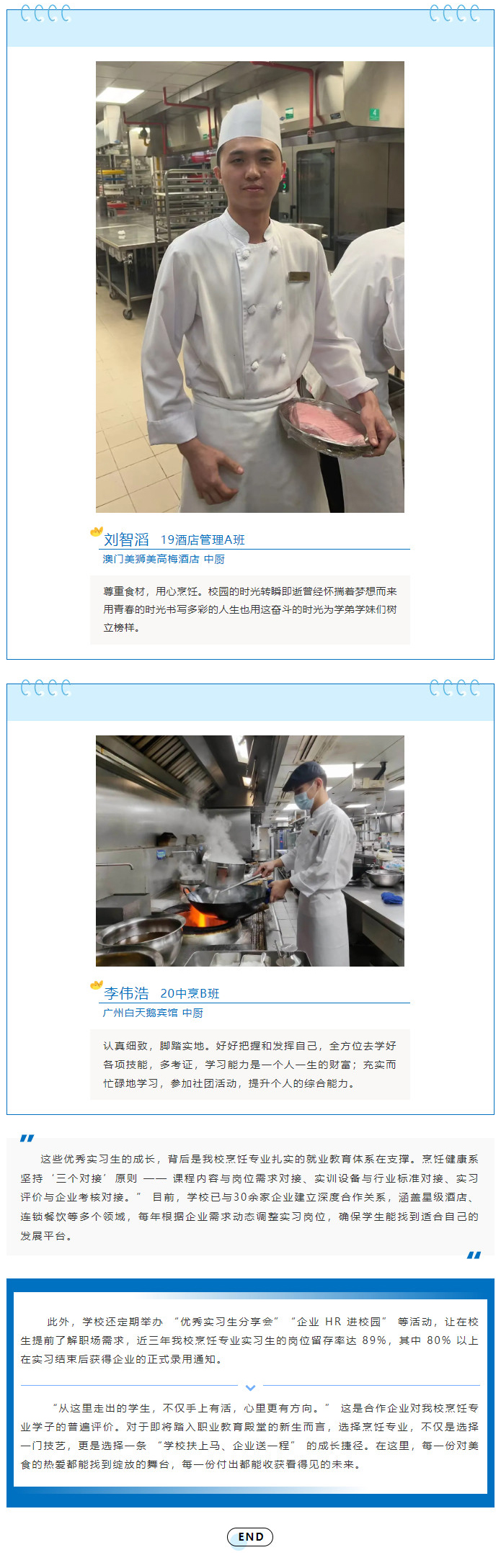 从实训台到职场,烹饪专业优秀实习生的成长答卷—— 学校就业教育助力学子扬帆