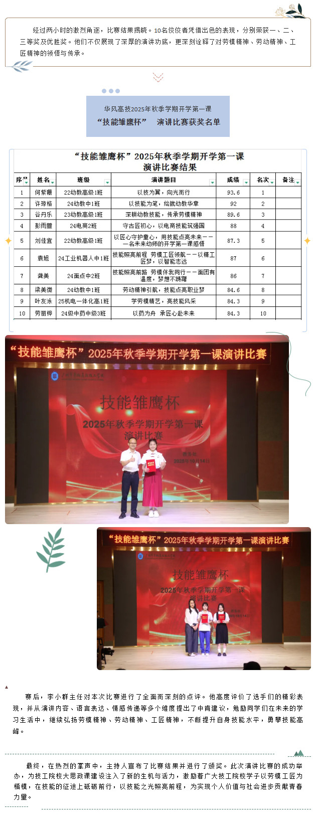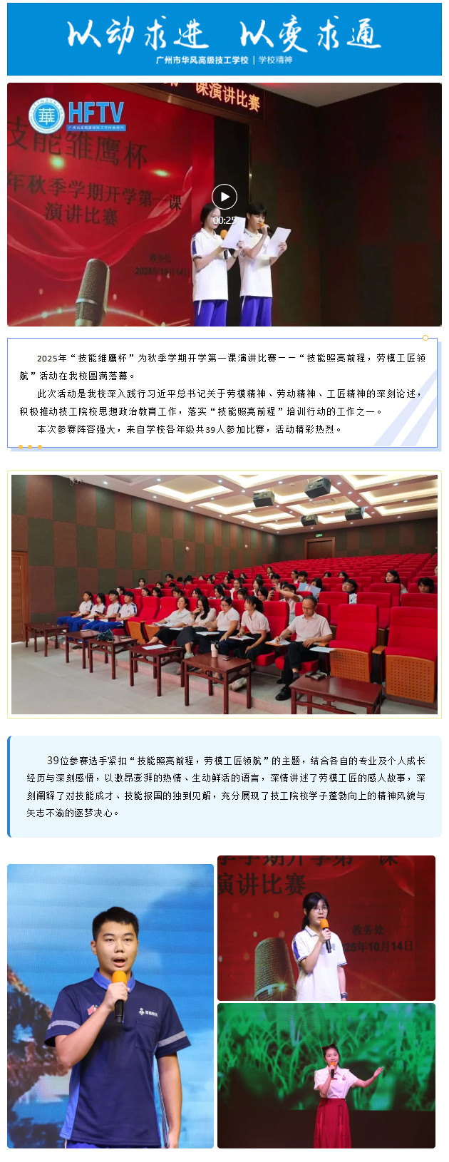 以技能之光,铸匠心之魂——我校开展 2025年开学第一课“技能维鹰杯”演讲比赛