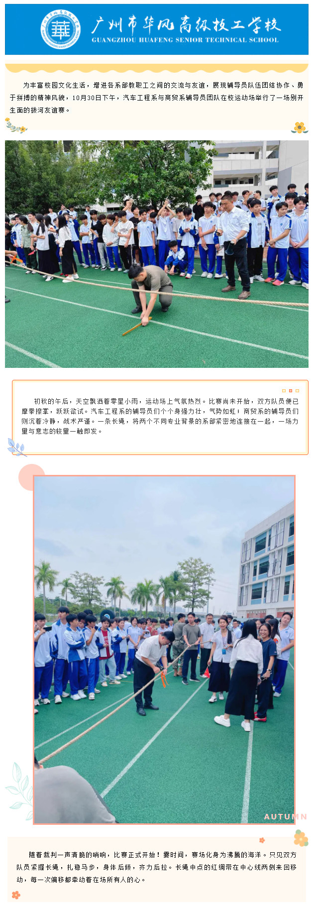 力拔山河,“绳”采飞扬——我校汽车工程系与商贸系辅导员拔河比赛