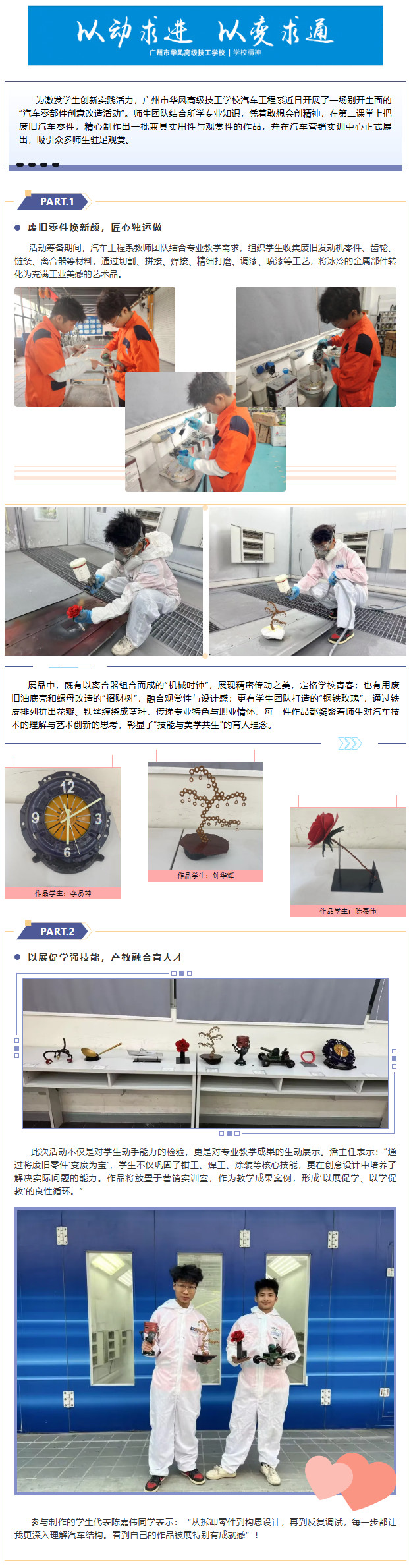 变废为宝展匠心 创意无限显技能 ——华风高级技工学校汽车工程系师生巧用汽车零部件打造艺术展品