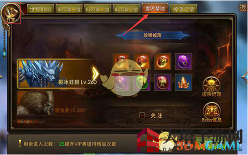 只需轻点屏幕上方功能栏的“打宝”选项,选择“虚无禁地”,即可开启你的探险之旅。