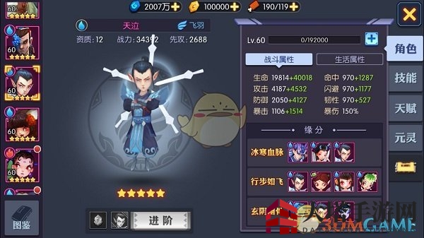 天泣,水属性伙伴,绝技能穿透前方敌人,直接对一列造成伤害;渡劫后,攻击力大增,还附带概率冰冻效果,是伤害与控制兼备的输出型伙伴。
