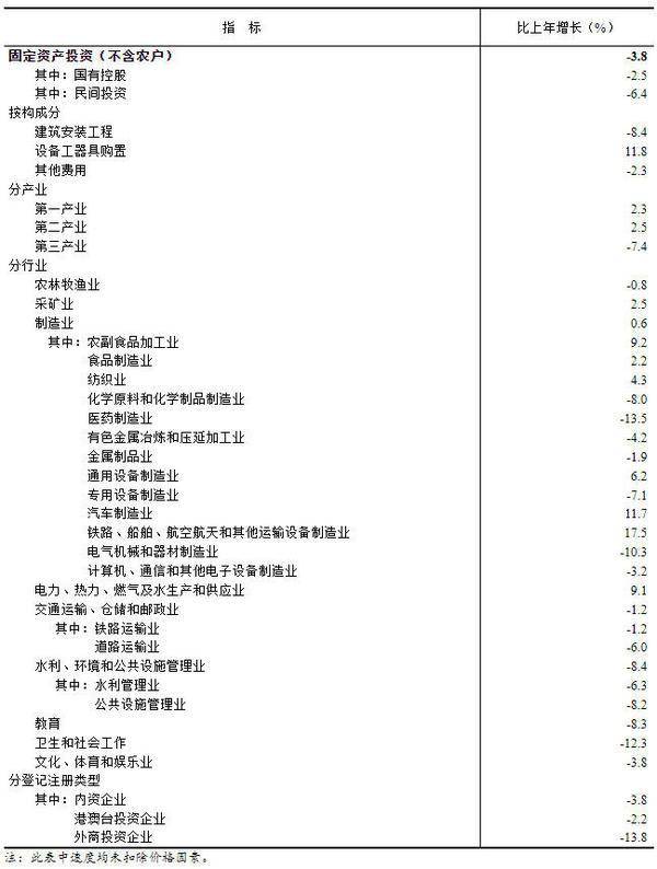 分登记注册类(lei)型看,内(nei)资企(qi)业(ye)固定资产投资比上年下降3.8%,港澳台企(qi)业(ye)固定资产投资下降2.2%,外商(shang)企(qi)业(ye)固定资产投资下降13.8%。