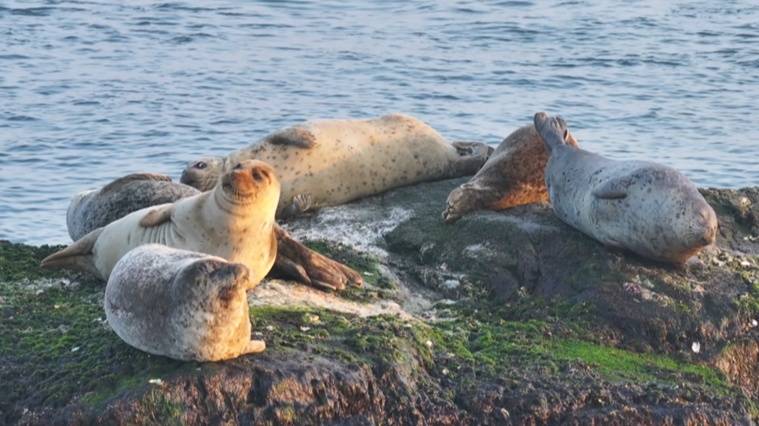长(chang)岛国家海(hai)洋(yang)公园管理中心副主任吴(wu)忠讯介绍,今年3月8日在(zai)海(hai)豹礁(jiao)发现了17只斑海(hai)豹。近几天,在(zai)长(chang)岛海(hai)域(yu)的海(hai)豹礁(jiao)、挡浪岛等庙岛群岛海(hai)豹省级自(zi)然保护区的核心栖息区,三五成群的斑海(hai)豹时(shi)而(er)趴在(zai)礁(jiao)石上享受日光浴(yu),时(shi)而(er)潜入水中嬉戏捕(bu)食,憨态可掬。这些被称作“海(hai)上大熊猫”的珍稀海(hai)洋(yang)生灵,每年3到5月都(dou)会洄游到长(chang)岛,在(zai)这里补充体力、休整栖息。
