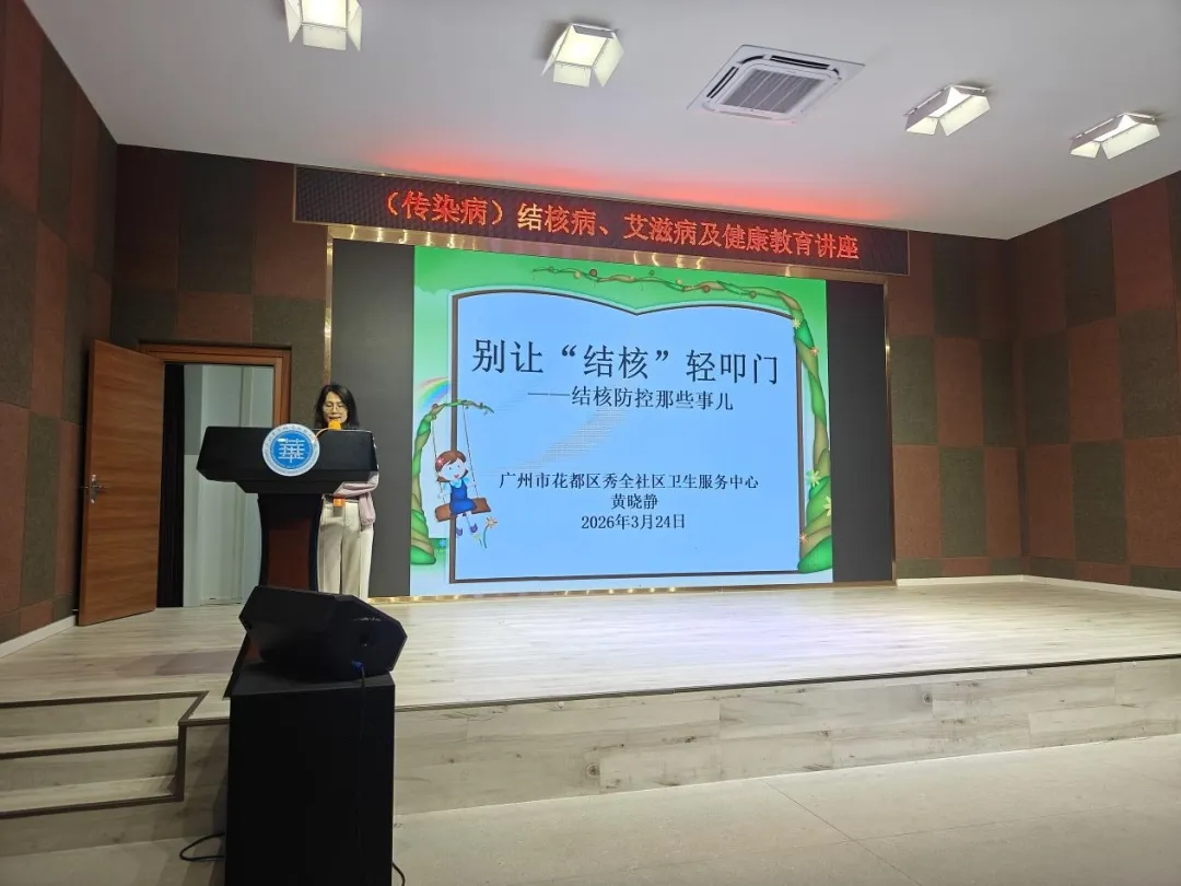 2026年3月24日是第31个世界防治结核病日,我国的宣传主题是"全面行动 全力投入 全民参与 终结结核"。为切实加强校园传染病防控工作,全面普及结核病防治健康知识,进一步提升学生自我防护意识,2026年3月24日下午,我校特邀花都区秀全社区卫生服务中心专家进行讲座,黄晓静医生以《别让"结核"轻叩门》为主题开展讲座,同时曾怡晨医生围绕《防艾于未然》为主题进行了专题讲座。 ...