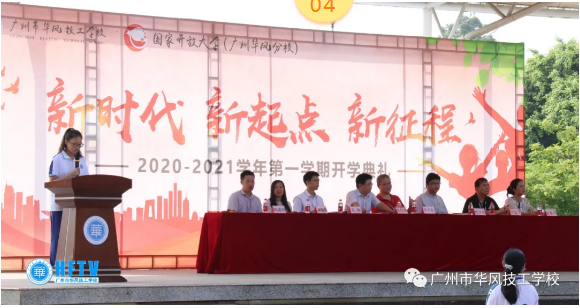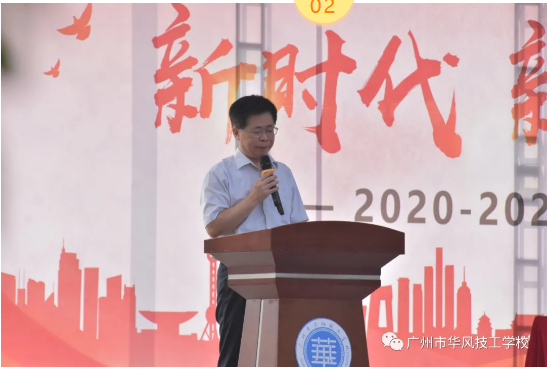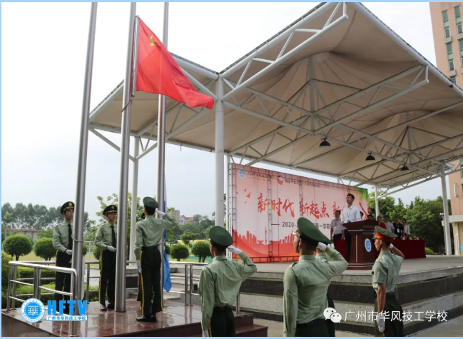 2020年9月7日上午8:30分,广州市华风技工学校2020—2021学年度第一学期开学典礼在学校文化广场举行。