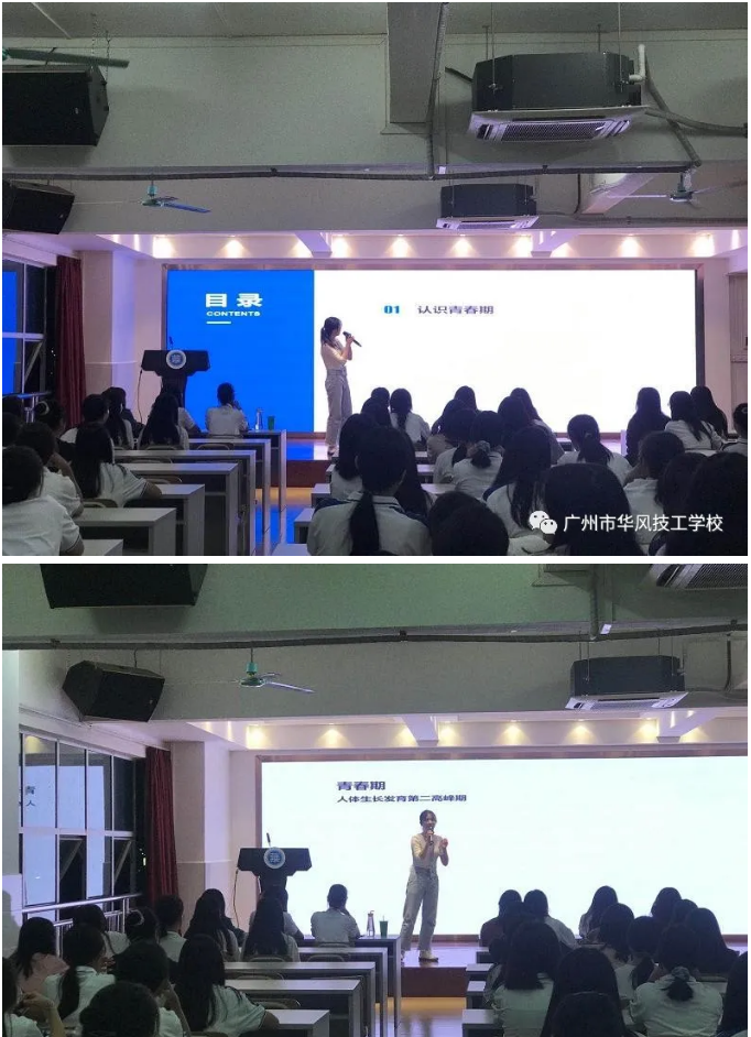 云朵拂去了阳光的燥热,天空也多了一份静谧和祥和,叶子未落,花朵盛开。微风吹来了一缕秋天的味道,一切是那般美好。在这美丽宜人的季节里,商贸艺术系联手心理健康中心悄悄为20级的小仙女们准备了以“拥抱青春,笑迎花季”为主题的女生青春期专题健康讲座。此次讲座由商贸艺术系发起,心理健康中心林老师、赵老师主讲。我系部相关教师及600余名女生分批次参加了此次讲座。