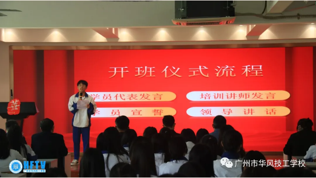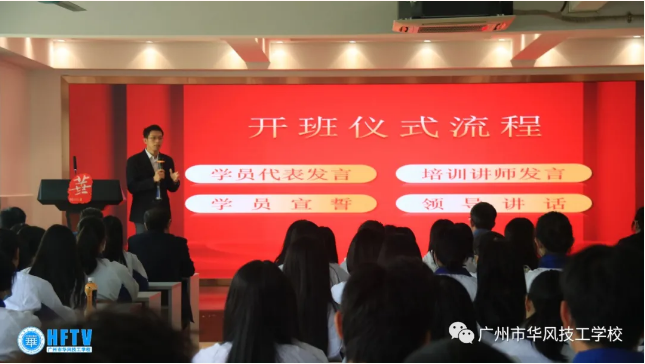 广州市华风技工学校高副校长为开班仪式讲话