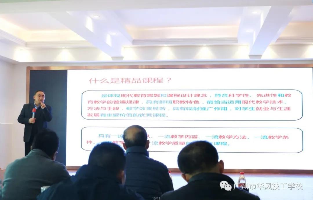 1月12日上午,学校邀请了中山市技师学院职教研究所所长雷三元为我校全体教职工做《技工院校精品课程建设》专题报告。雷所长分别从:什么是精品课程?精品课程作用、精品课程评审指标、精品课程的建设等方面开展,并指出名校要看名专业,名专业要看名课程。