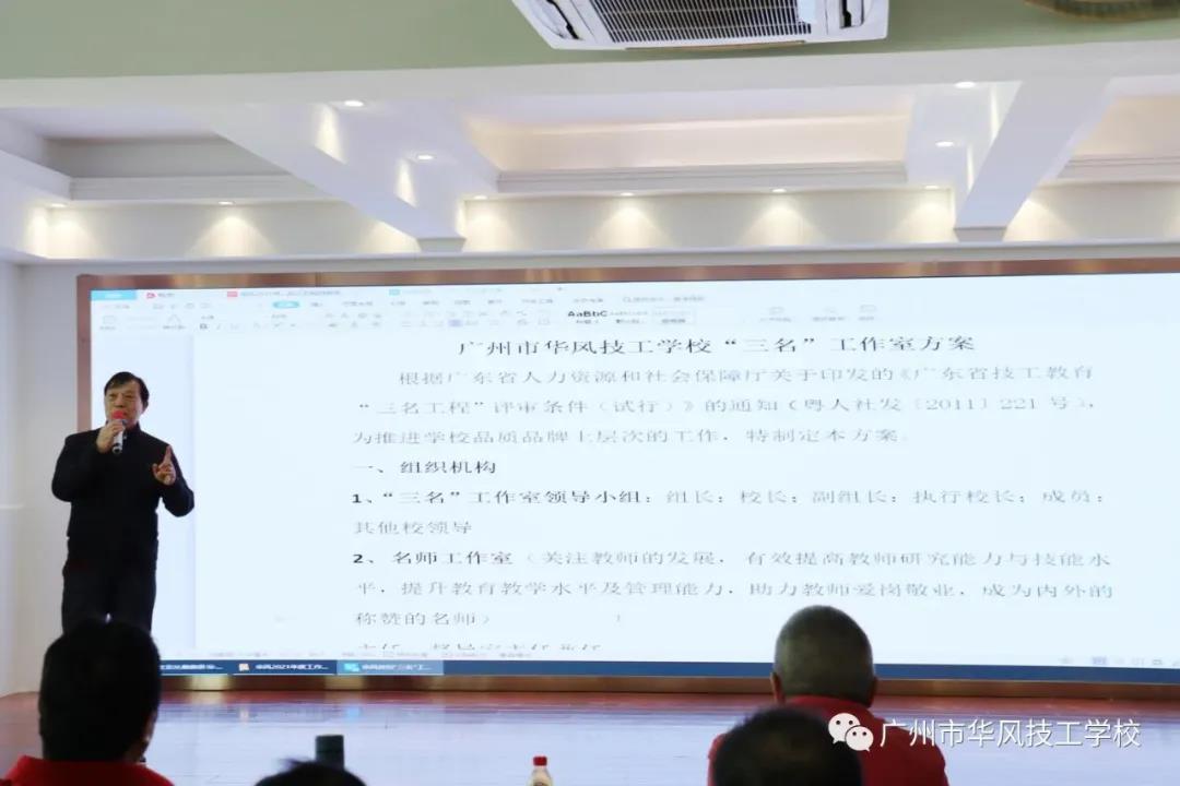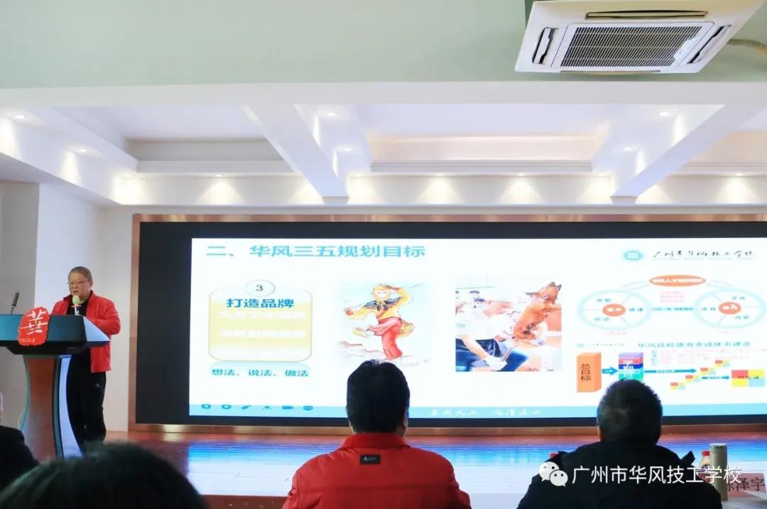 1月12日下午,学校领导分别作《华风三五发展规划纲要》、《“三名”工作室方案》、《党建引领下的学校德育工作规划》工作报告。执行校长张可安作了《华风三五发展规划纲要》报告,分别从华风三五规划的起点、目标、措施等方面明确了华风未来五年的发展目标,并提出了2021年学校的工作目标,要求全体教职工要抓紧时间学习,提升自我,紧跟学校发展的步伐。