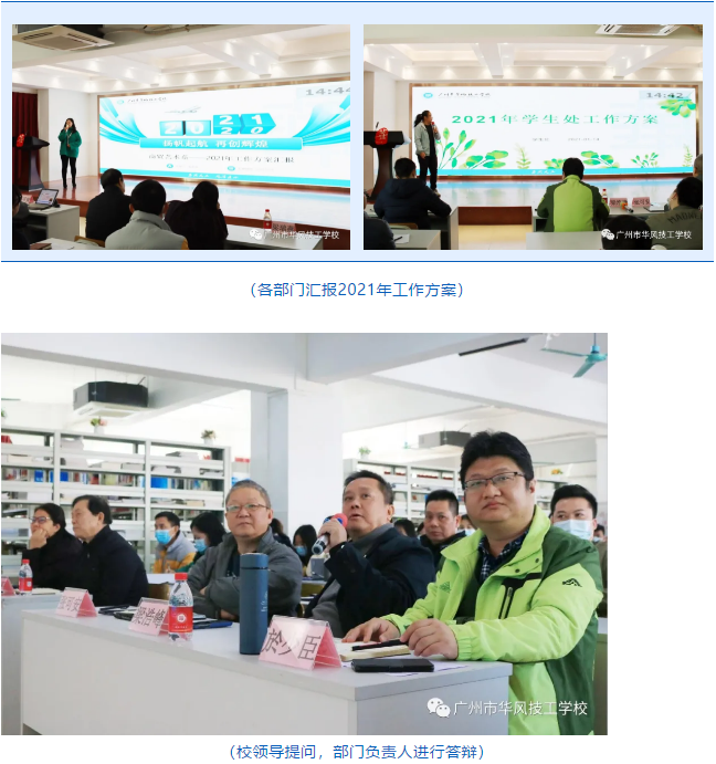 为顺利开局,在这个期末年初的大好时节,我校组织召开了为期三天的2021年度工作会议。会议议程包括:专家专题报告、校领导工作报告、乘风破浪团队研讨分享、各部门2021年工作方案汇报、以及期末总结表彰大会。校外专家、全体校领导及教职工参加了工作会议。