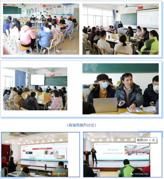 1月13日上午,乘风破浪团队围绕《技工院校精品课程建设》、《“三名”工作室方案》展开讨论。讨论如何建设精品课程,并以PPT的方式进行分享汇报,由校领导、专家进行点评。