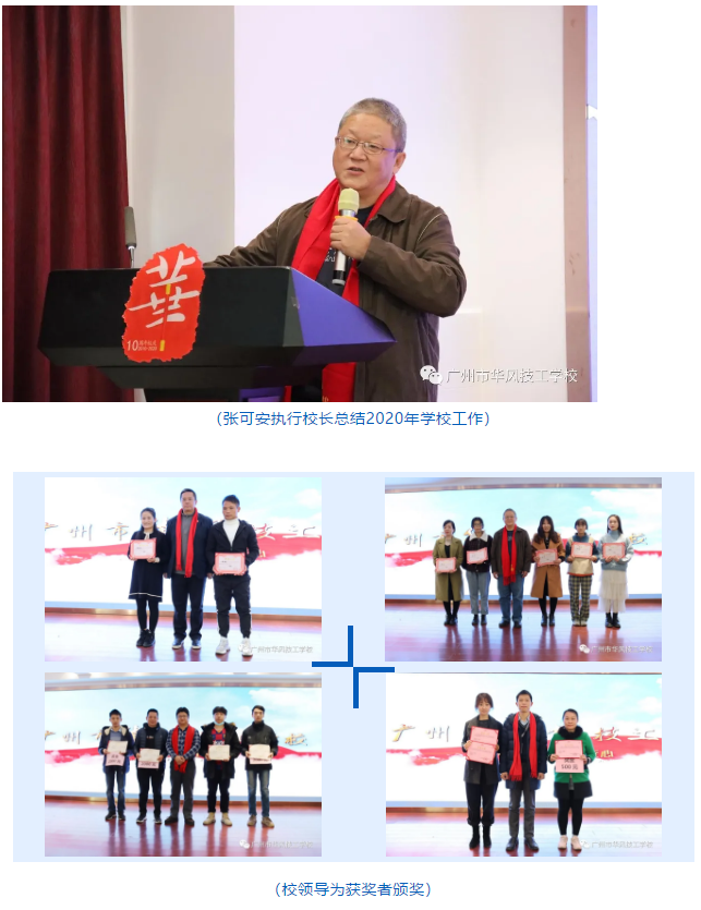 1月14日下午,召开2020年总结表彰大会,大会上全体教职员工观看各部门的新年祝福视频,执行校长张校对华风技校2020年的工作进行总结,总结取得的成绩与不足,并展望2021年的工作计划,大会最后对2020年度获得荣誉的教职工进行颁奖。