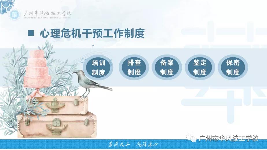 做好预防工作,班主任在日常工作中需主动了从自己观察、学生观察、互联网观察等多途径关注同学们的知情意行,以宿舍小单位、班级大单位为范围来关注,发现同学异常情况时及时上报系部与学校,降低危机事件发生的可能性。