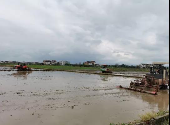 江西省九江市都昌县中馆镇高标准农田区稻田翻耕种植早稻。受访者供图