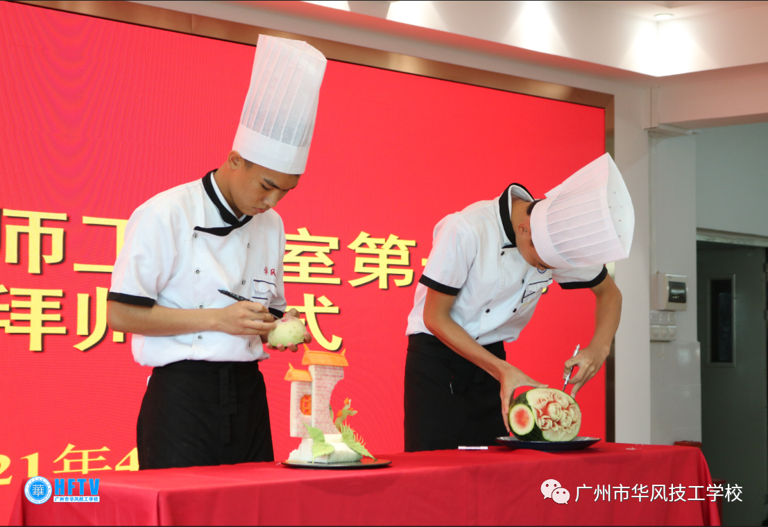 为了进一步弘扬粤菜师傅工程,继承粤菜技术,让烹饪健康系学子们有更好的专业学习积极性,烹饪健康系于2021年4月16日在学校行政楼五楼会议室隆重组织举办了粤菜大师工作室第一批收徒仪式。这次首批收徒拜师得到了学校领导的高度重视,学校梁浩峰校长、张可安执行校长、高睦副校长、徐思平副校长、还有校外广东省烹饪行业协会黄嘉东大师、梁绍明大师、烹饪健康系全部教师和18级A班、20级中烹学生和19级大专班共200多名领导嘉宾和师生,在区嘉欣老师的热情主持下一起见证了我们烹饪健康系大师工作室郭伟成大师对经过精心挑选的10位20级中烹班级徒弟的拜师仪式。这次活动由区嘉欣老师主持,大师工作室郭伟成大师收徒仪式。
