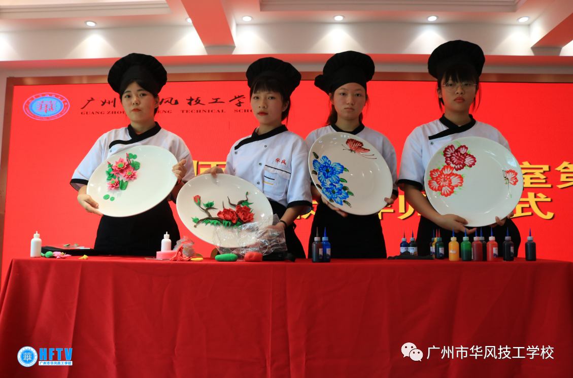 此次烹饪健康系粤菜师傅大师工作室首批收徒拜师仪式活动中还给大家展示了烹饪健康系自2018年办专业以来教学和学习成果、展示了学生烹饪专业“气球上切肉丝”、“食品雕刻整雕”、“果酱画快速技法”、“面塑”等四个绝活项目,影响强烈震撼全场,给大师工作室收徒拜师很强的宣传效果。然后进行了隆重的十位学生徒弟拜为郭伟成大师门下的敬茶参拜入室仪式。每个学生徒弟真诚参拜,大师也回礼相关入室纪念信物。仪式上大师代表、学生徒弟代表分别做了郑重的讲话入室学艺承诺。最后学校领导张可安执行校长代表学校做了重要讲话,充分肯定了烹饪健康系大师工作室首批收徒拜师仪式活动的组织工作,为广东省政府、学校的粤菜师傅工程发展和继承开启了征程,希望烹饪健康系在粤菜师傅工程背景下将烹饪专业发展壮大,学生桃李满天下。