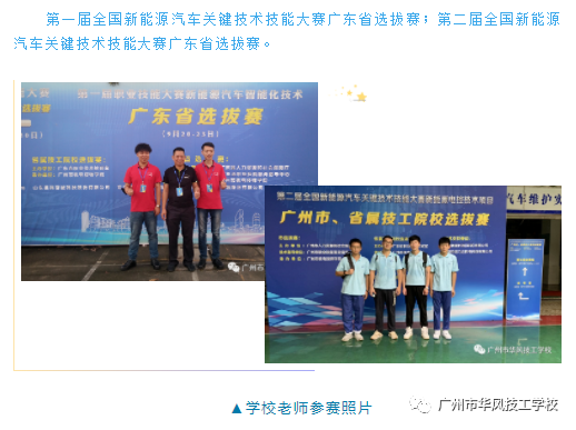 新能源汽车检测与维修专业开设时间虽然短,但是师生勇于拼搏、奋斗、创新的精神,在2019年广州市新能源校企合作协会年会中荣获年度优秀校企合作单位、年度优秀培训师、年度优秀学生等奖项。