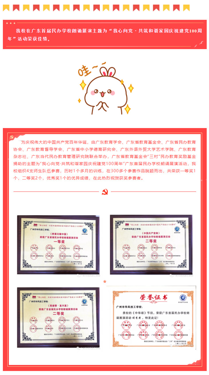 喜报!我校在广东首届民办学校朗诵展演主题为“我心向党·共筑和谐家园庆祝建党100周年”活动中荣获佳绩