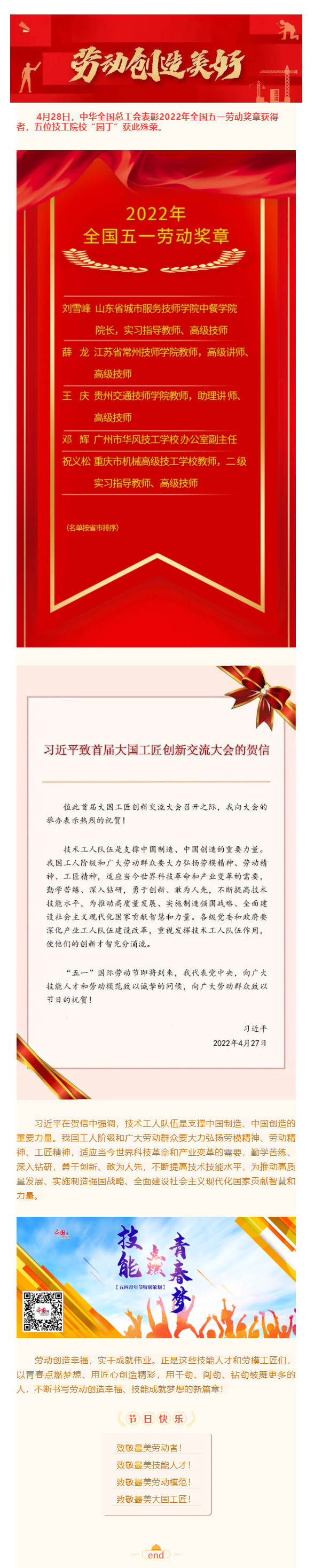 致敬最美劳动者丨五位技工院校“园丁”获全国五一劳动奖章