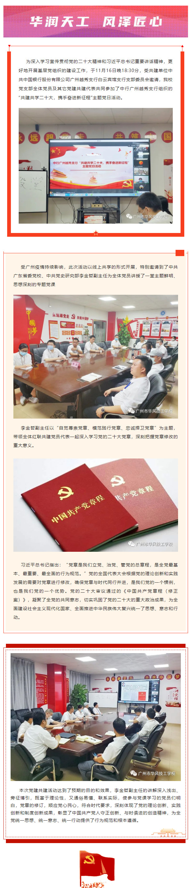 红联共建——记我校党支部参与中行广州越秀支行“共建共学二十大,携手奋进新征程”主题党日活动