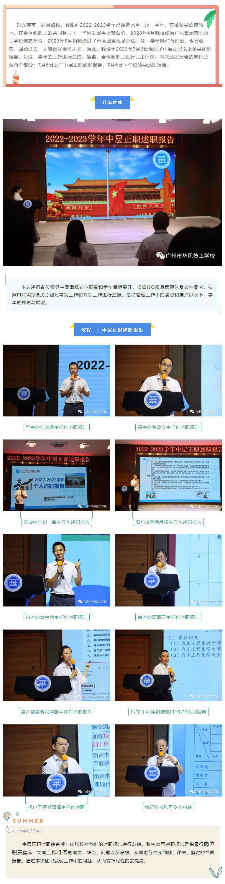 终点即是起点——广州市华风技工学校中层正职以上领导述职报告
