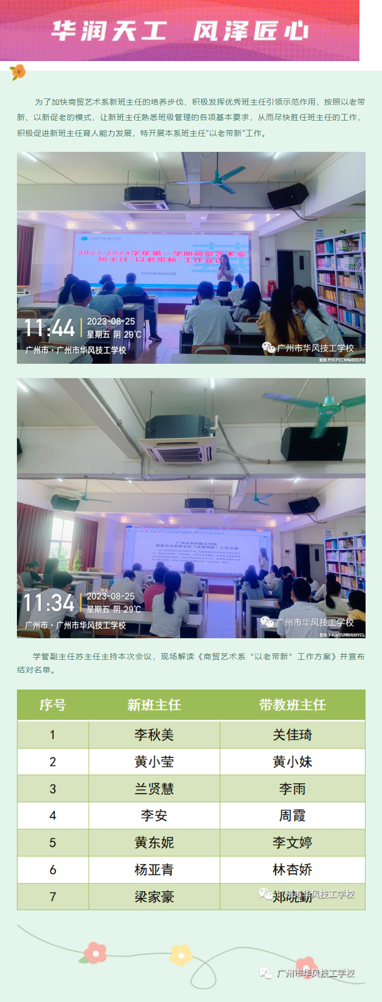 倾囊相授传师道 以老带新促成长——商贸艺术系班主任“以老带新”工作会议