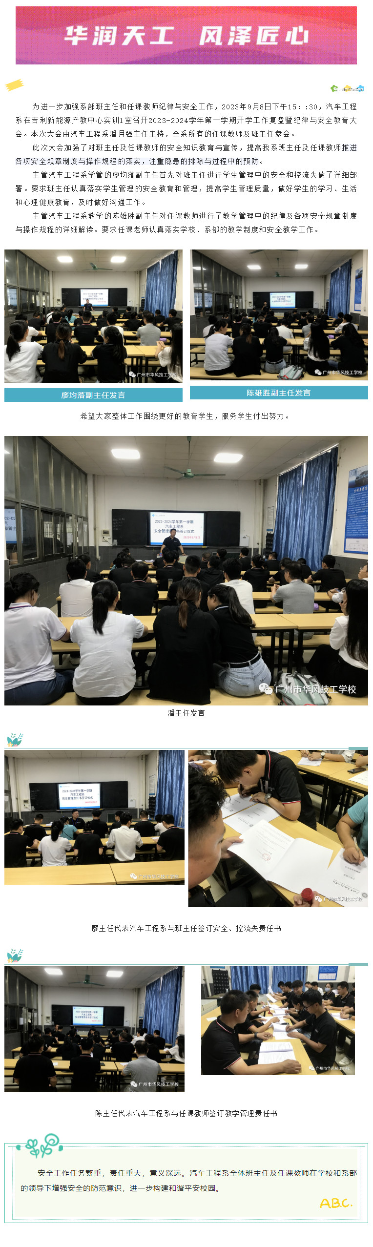 汽车工程系2023-2024学年第一学期开学工作复盘暨纪律与安全教育大会