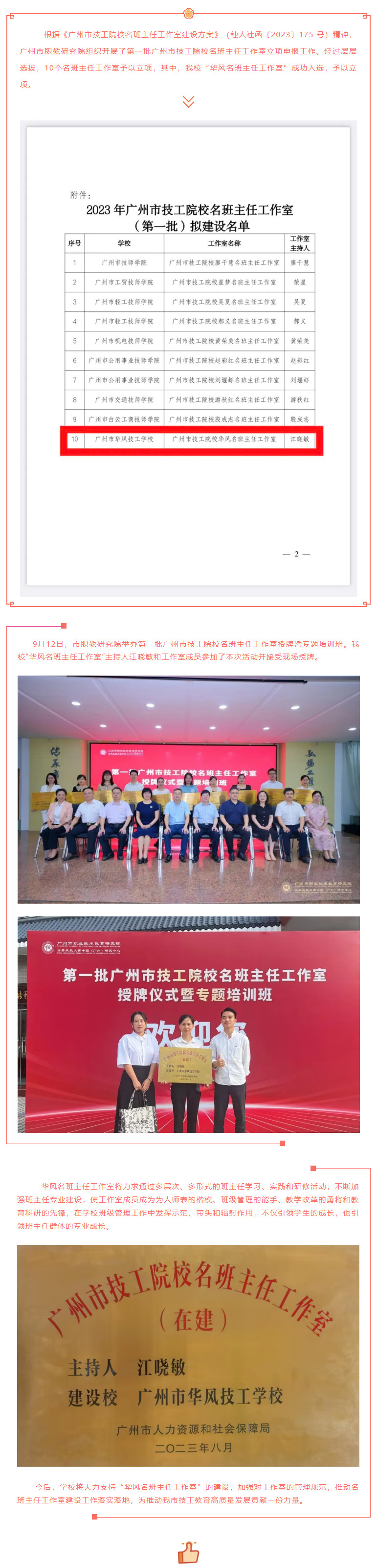 喜讯 | 我校“华风名班主任工作室”成功入选第一批广州市技工院校名班主任工作室建设名单