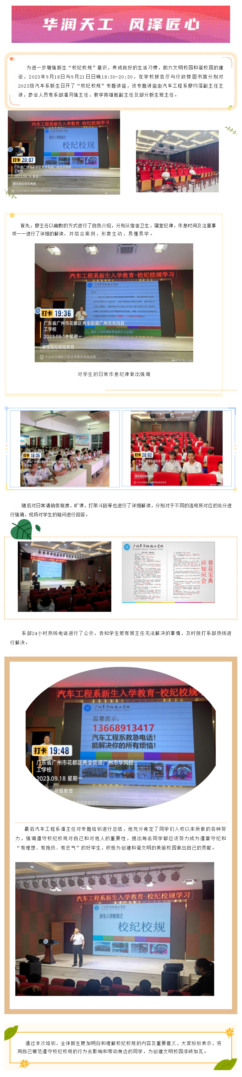 增强校纪校规意识 创建文明和谐校园——汽车工程系举行2023级新生《校纪校规》纪律专题讲座
