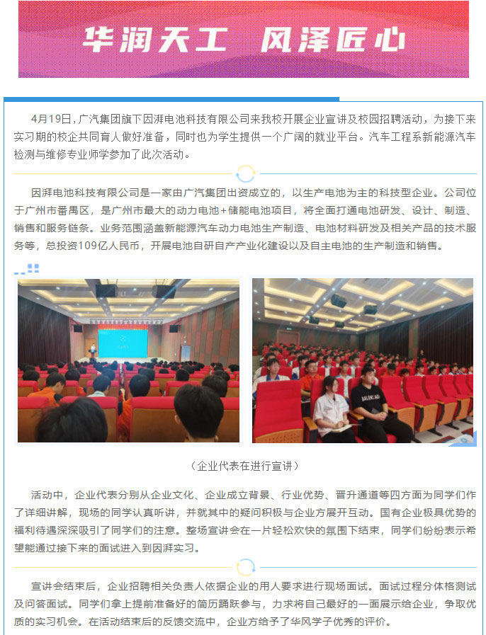 汽车工程系校园招聘——记因湃电池科技有限公司宣讲会暨招聘会