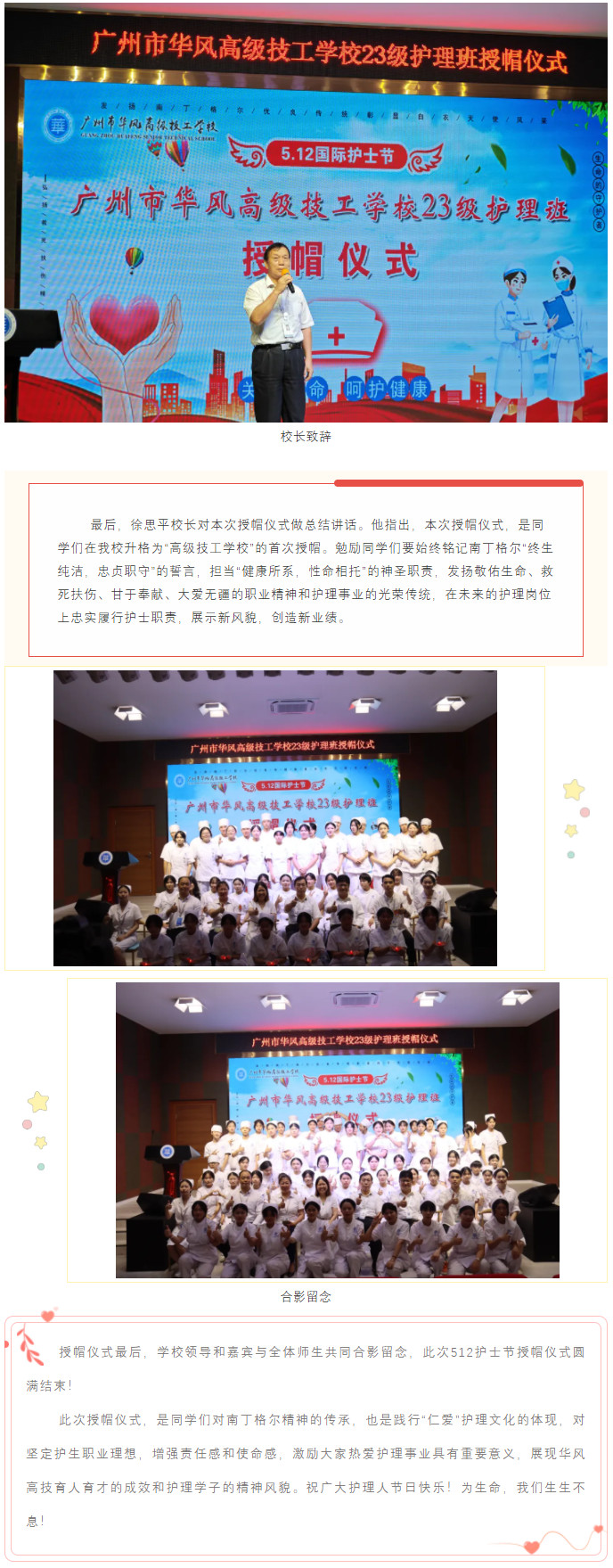 “我们的护士,我们的未来“——广州市华风高级技工学校23级护理专业授帽仪式