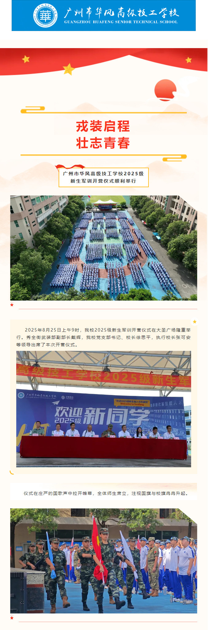戎装启程,壮志青春 | 广州市华风高级技工学校2025级新生军训开营仪式顺利举行