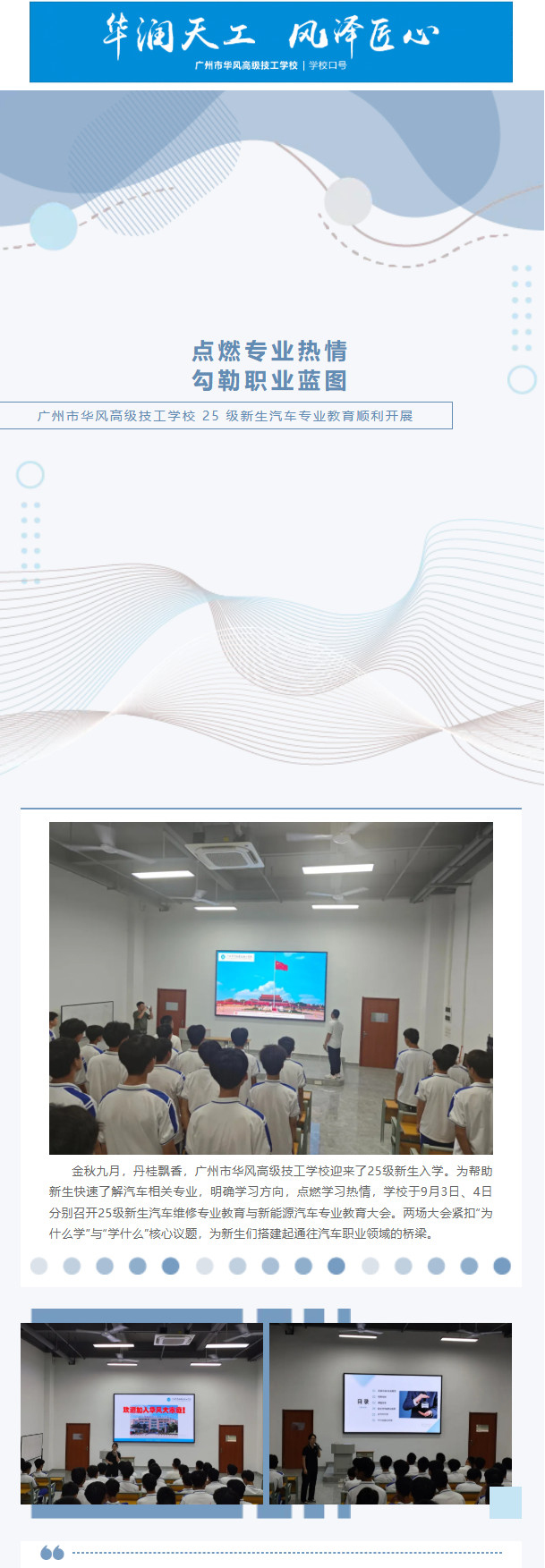点燃专业热情,勾勒职业蓝图 —— 广州市华风高级技工学校 25 级新生汽车专业教育顺利开展
