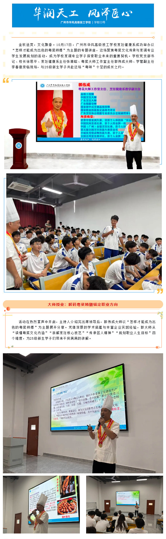 粤菜薪火传 厨梦启新程——广州市华风高级技工学校大师讲座圆满落幕