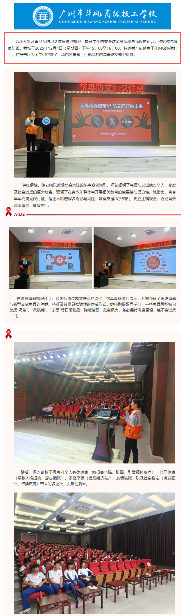 广州市华风高级技工学校举办禁毒防艾知识讲座——无毒青春绽芳华,防艾同行向未来